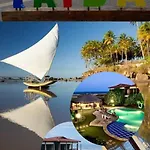 Set approximately a 10-minute walk from wall of two flags, the 28 m^2 Taiba - Ondas Do Mar Residence Ap 212 Sao Goncalo do Amarante comprises a patio and a balcony overlooking the garden. Offering a terrace, this 2-bedroom apartment also features an outdoor pool for guests ultimate relaxation.